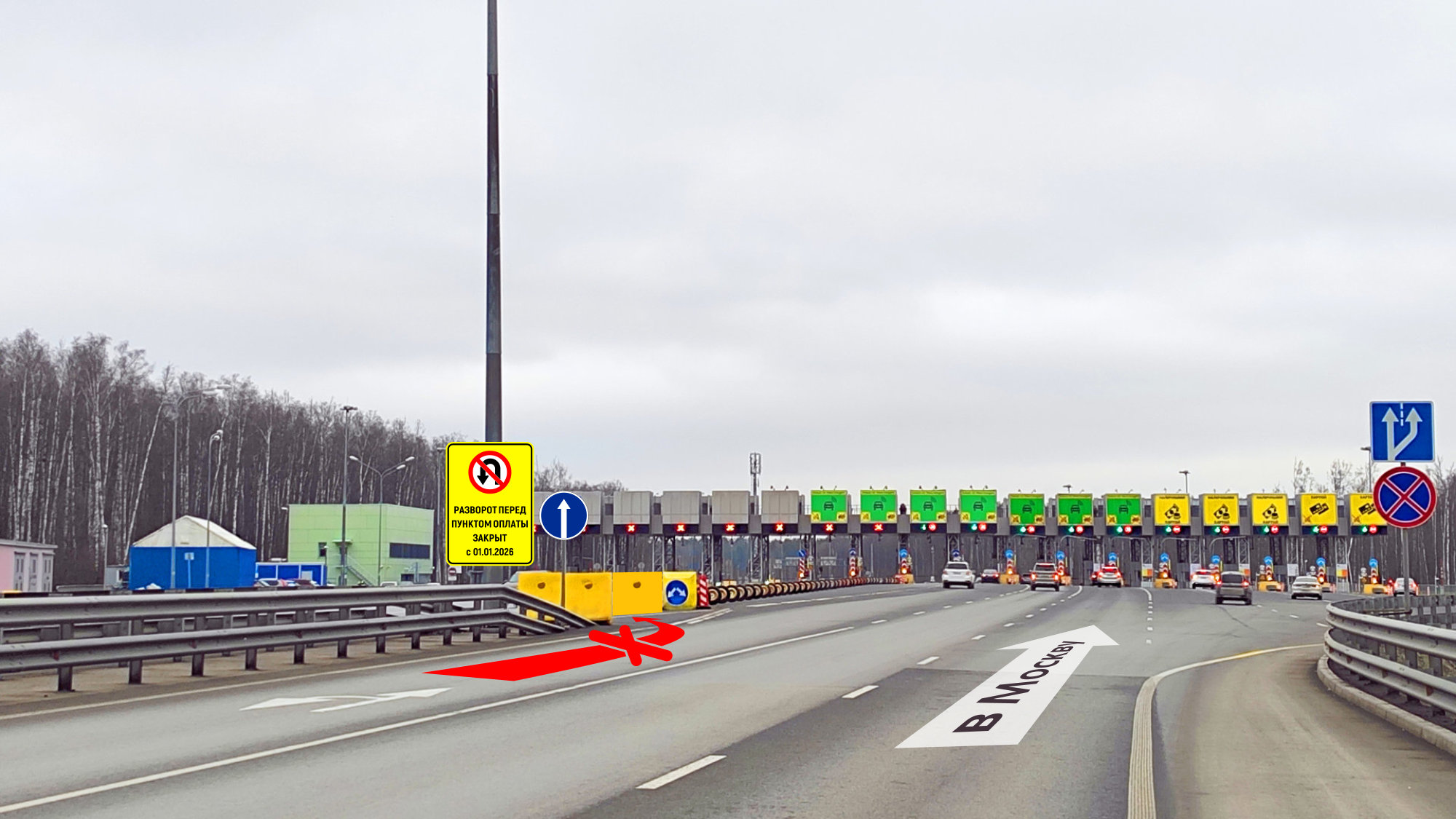 АО «Новое качество дорог» (Оператор платной автомобильной дороги общего пользования федерального значения М-1 «Новый выход на Московскую кольцевую автомобильную дорогу с федеральной автомобильной дороги М-1 «Беларусь» Москва-Минск») информирует о закрытии разворота перед пунктом взимания платы на км 6,9 при движении в сторону Москвы с 1 января 2026 года.